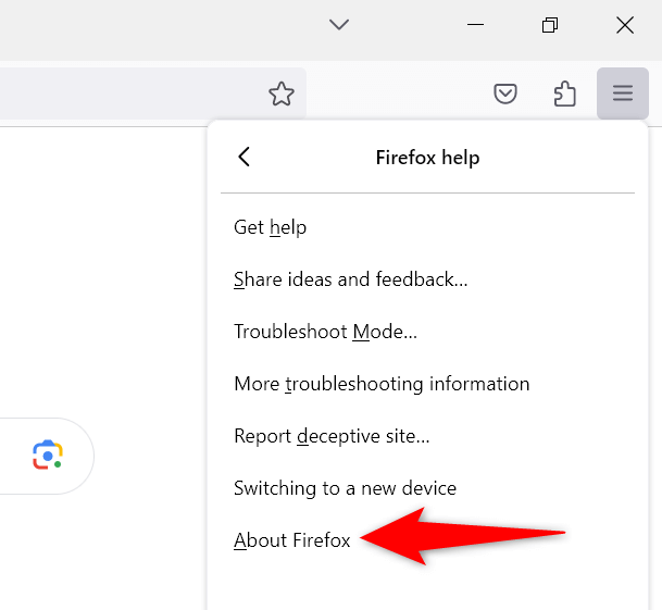 - Valitse kolme vaakaviivaaFirefoxOikea yläkulma ja valitseAuttaa-Tietoja Firefoxista.