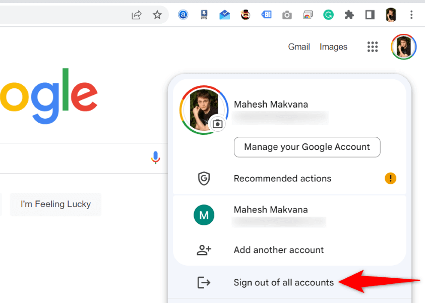 - ValitaIlmoittautuataiKirjaudu ulos kaikista tileistä, riippuen siitä, kuinka monta tiliä olet linkittänyt selaimeen.