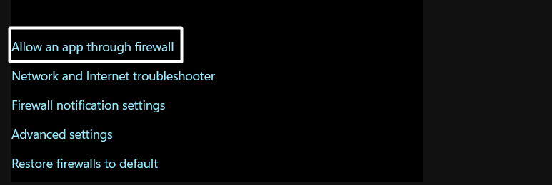 Siksi suosittelemme, että sallit VPN-sovelluksesi järjestelmäsi palomuurin läpi. Tällä tavalla se ei pysäytä mitään VPN:n tehtäviä ja toimintoja. Olemme maininneet vaiheet saman tekemiseksi alla: