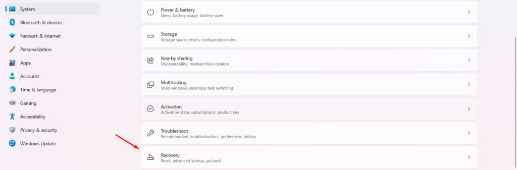 2.AvaaPalautusosio ja napsautaKäynnistä nyt uudelleenPainike allaPalautusvaihtoehdot.