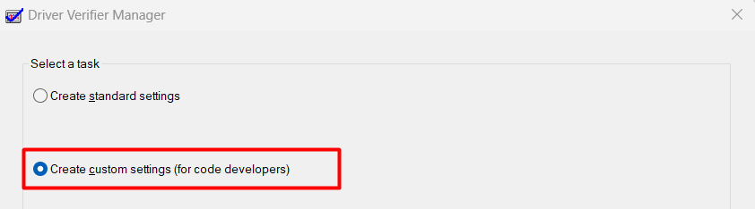 9.Näet nytKuljettajan todentajan johtajaikkuna. ValitaLuo mukautettuja asetuksia (koodikehittäjille)vaihtoehto.