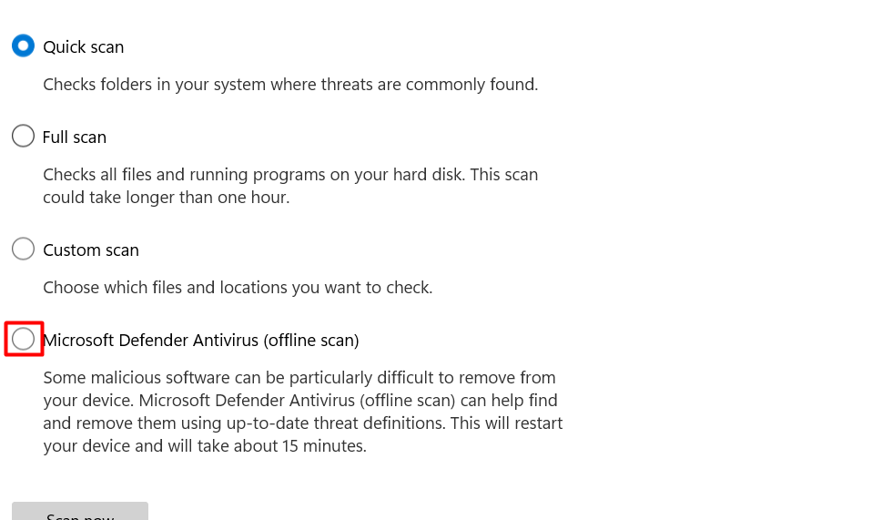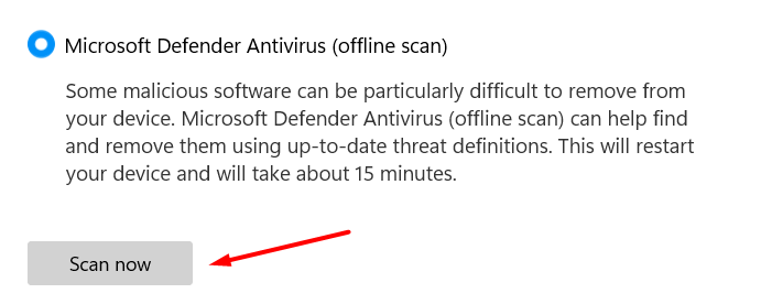 6.ValitseMicrosoft Defender Antivirus (offline -skannaus)vaihtoehto.