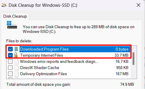 3.ValitaLadattuja ohjelmatiedostoja, väliaikaisia Internet -tiedostoja, pikkukuvia,jaVäliaikaiset tiedostot.