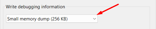 5.Varmista, että asetatPieni kaatohakemisto-lla%SystemRoot%Minidump.