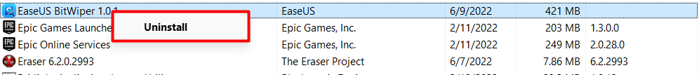 3.Kerran löydetty,Napsauta hiiren kakkospainikkeellasovelluksessa ja valitsePoista.