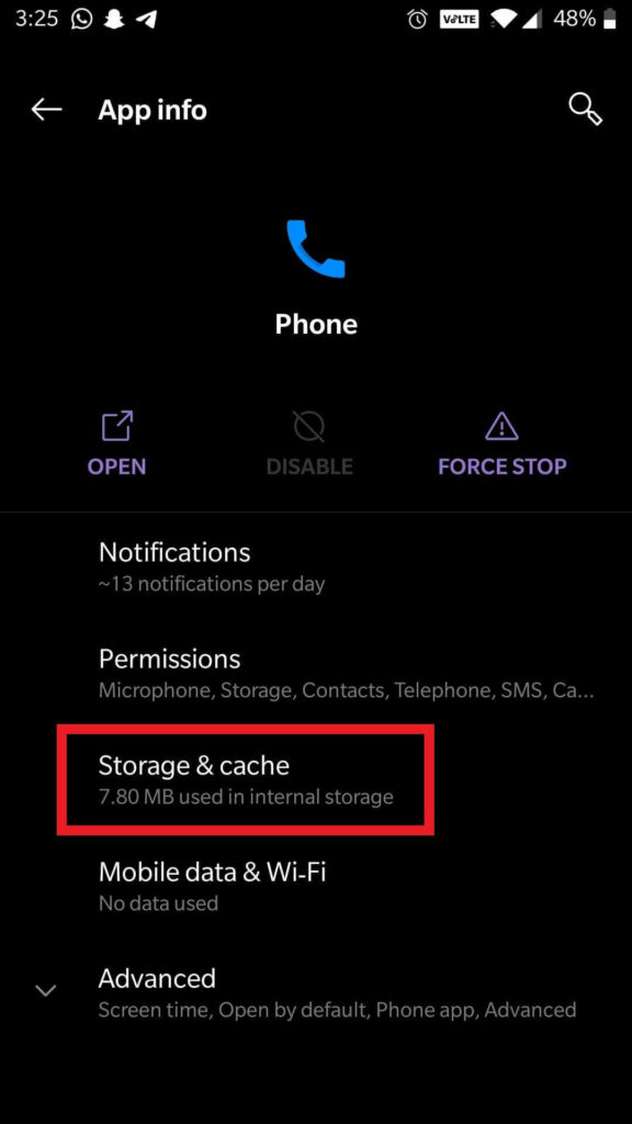 Puhelinsovelluksen välimuistin ja tietojen tyhjentäminen voi myös korjata Wi-Fi-puhelun ongelman. Tämä prosessi poistaa kaikki vioittuneet tiedot, jotka saattavat häiritä sovelluksen toimintoja. Välimuistin ja datan tyhjentäminen seuraa alla olevia vaiheita: