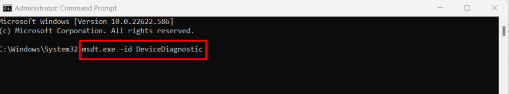 Löydät myös tämän ongelman syyllisen ja korjata sen heti integroidun laitteiston vianetsintätyökalulla. Siihen pääsee yksinkertaisesti suorittamalla yksinkertainen koodirivi komentokehotuksessa. Seuraa vaiheita ja suorita laitteiston vianetsijä.