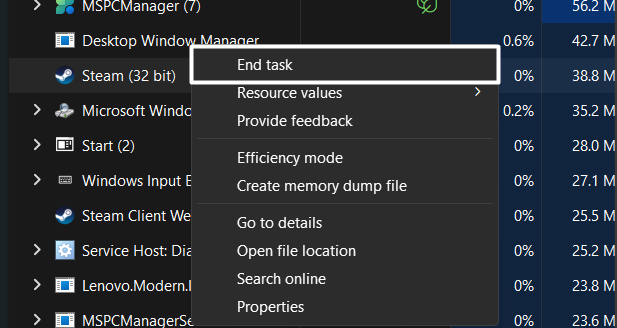 6.Loppujen lopuksi voima sulje kaikki ei-Microcroft-prosessit Task Managerissa ja tarkista ongelman tila.