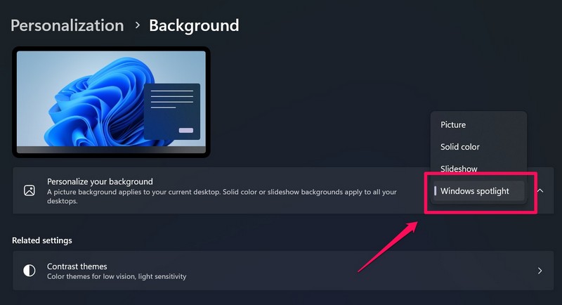 3. Tarkista, onko Windows Spotlight käytössä Windows 11: ssä