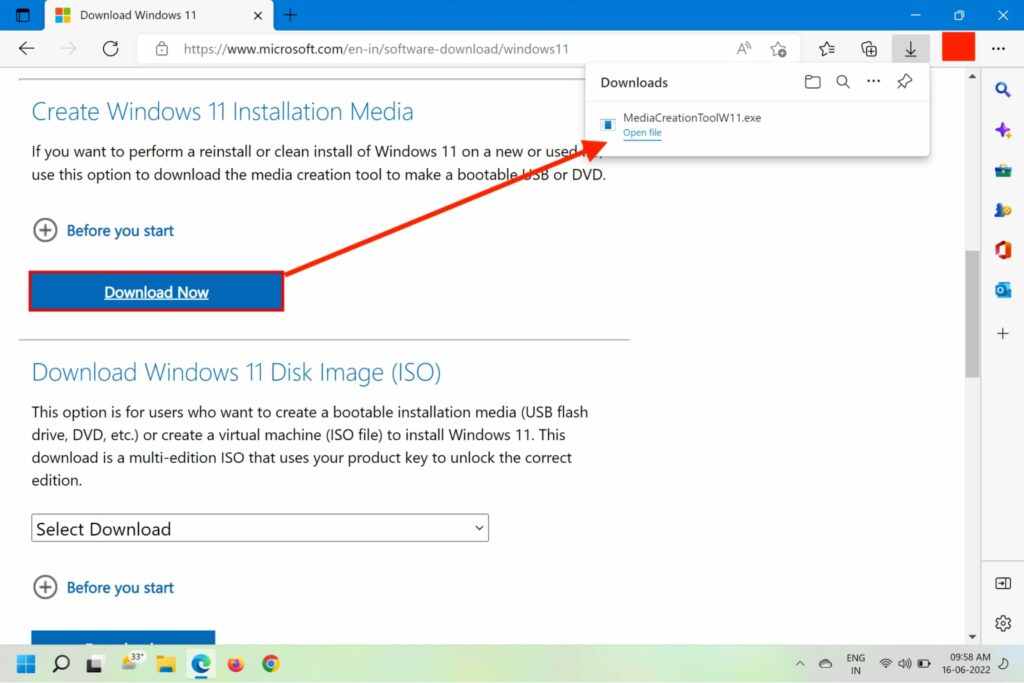 2.Napsauta seuraavalla sivullaLataa nytallaLuo Windows 11 -asennusmedia.