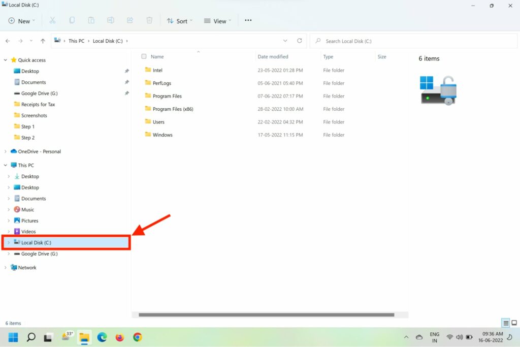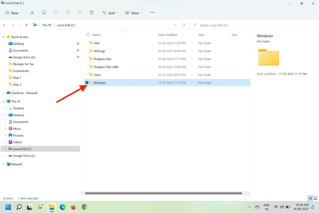 2.Siirry osoitteeseenJärjestelmä (C:) -asemaja avaaWindowskansio.
