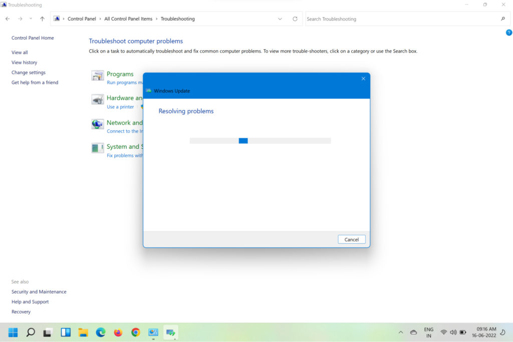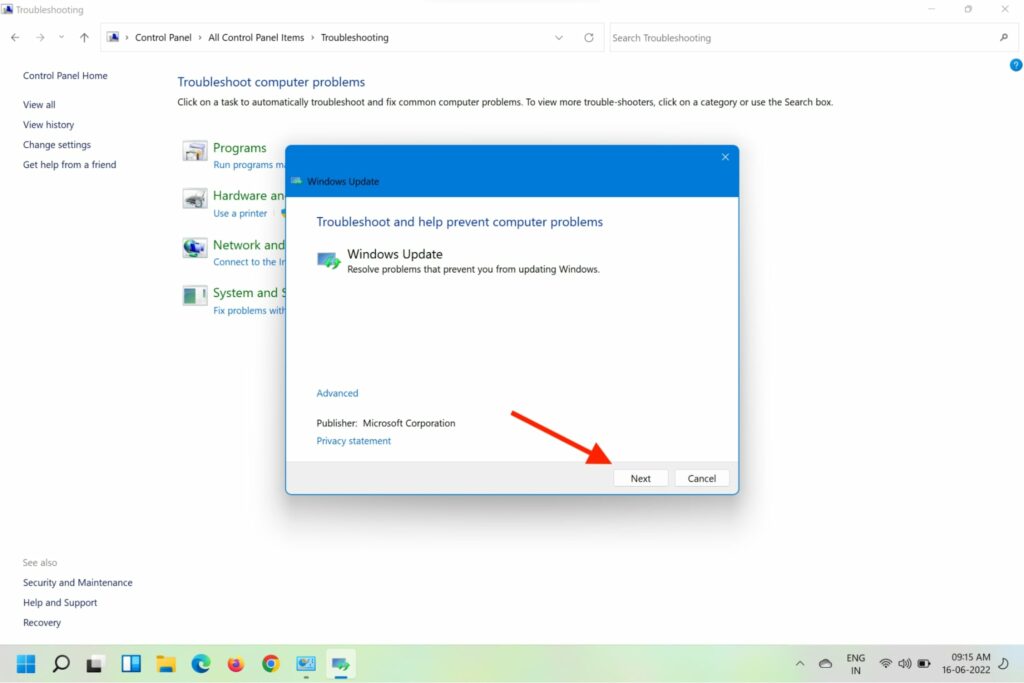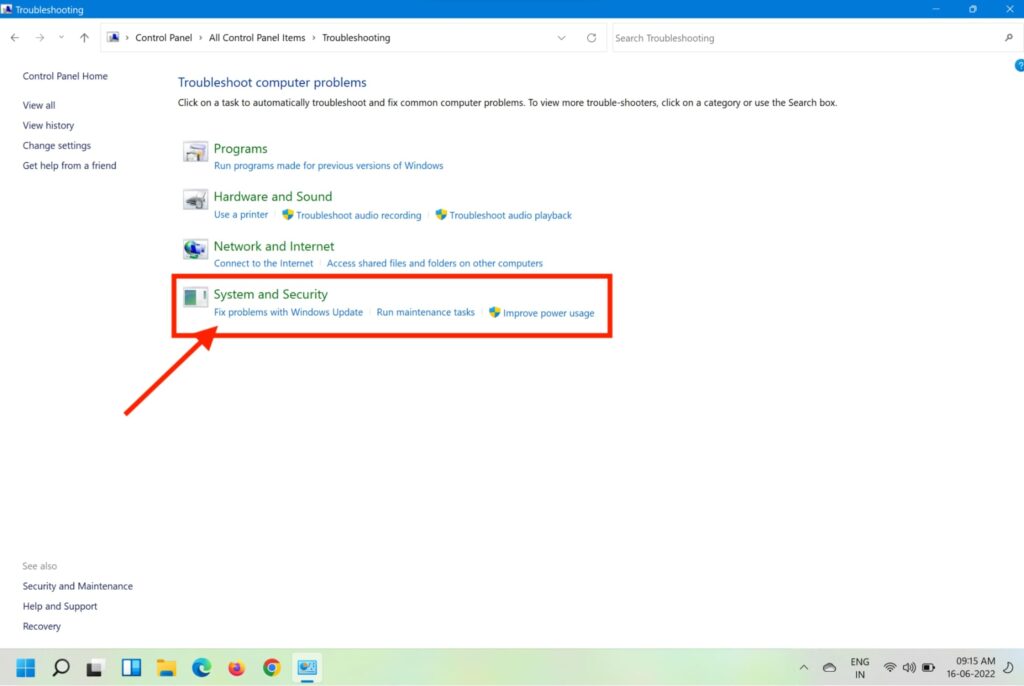 5.Napsauta seuraavalla sivullaKorjaa Windows Update -ongelmatallaJärjestelmä ja turvallisuus.