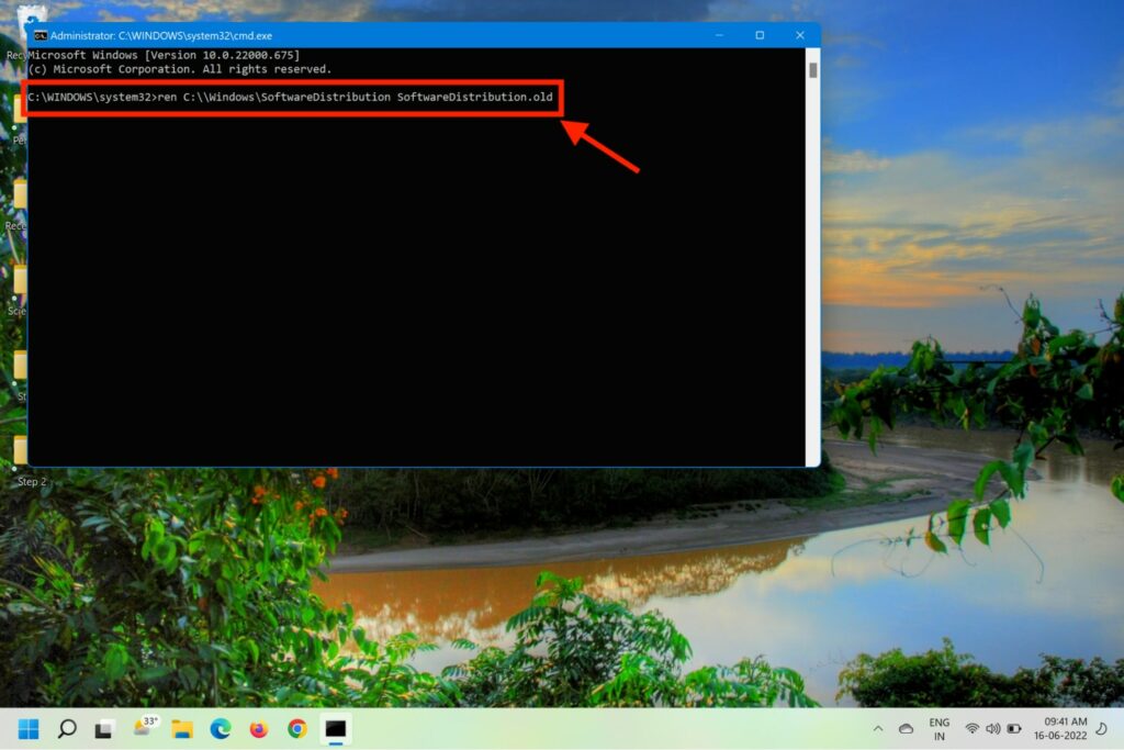 5.Tyhjennä ja nimeä se uudelleenSoftware DistributionjaCatroot2kansiot komennoillaren C:WindowsSoftwareDistribution SoftwareDistribution.oldjaren C:WindowsSystem32catroot2 Catroot2.old.