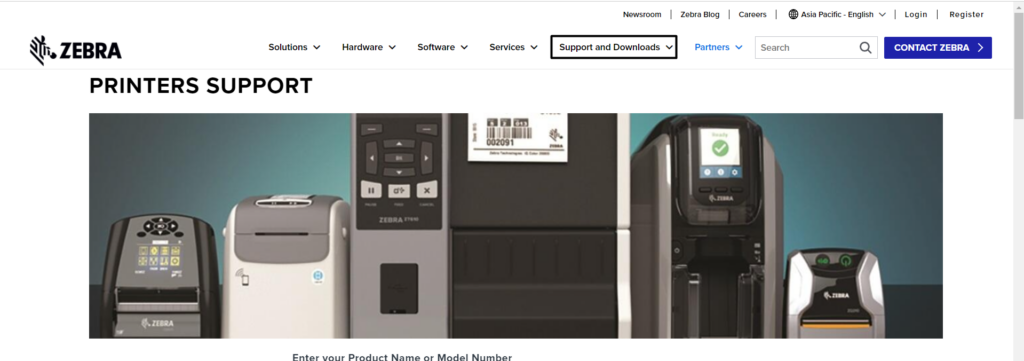4.KäydäTulostimet tukevat ja latauksetSivu ja etsi Zebra -tulostin.