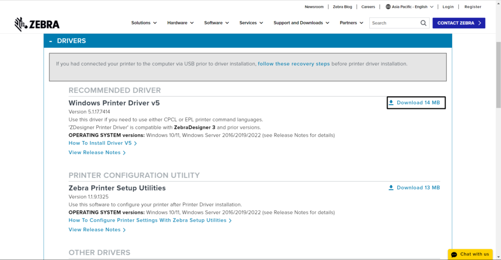 Voi olla mahdollista, että Zebra -tulostimen ohjaimet ovat vanhentuneita, minkä vuoksi tulostin ei toimi tietokoneellasi. Päivitä siinä tapauksessa Zebra -tulostimen ohjaimet Zebran viralliselta sivustolta.