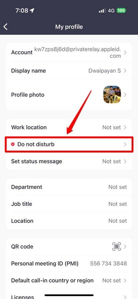 7. Varmista, että Älä häiritse -tila on poistettu käytöstä iPhonesi Zoom-sovelluksessa