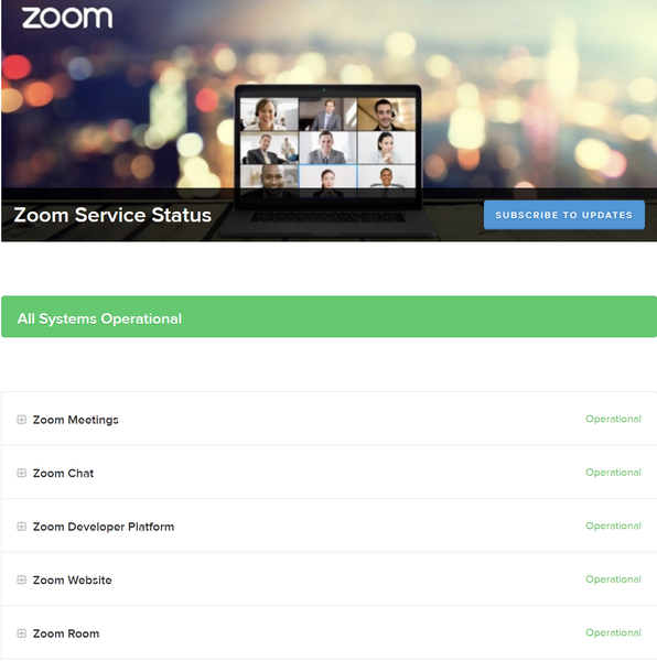 Jos haluat ottaanopea katsaus palvelun tiloihinZoom-palvelimista voit tarkistaa Zoom Server Status -sivun.