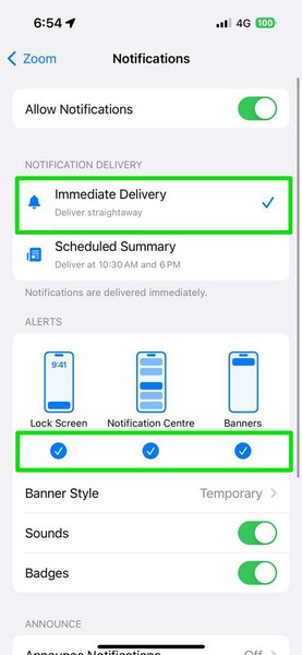 6.Suosittelemme myöspitää ilmoitusasetukset välittömänäkanssakaikki ilmoitushälytysvaihtoehdot on valittuallaHälytykset-osio.