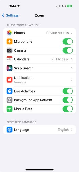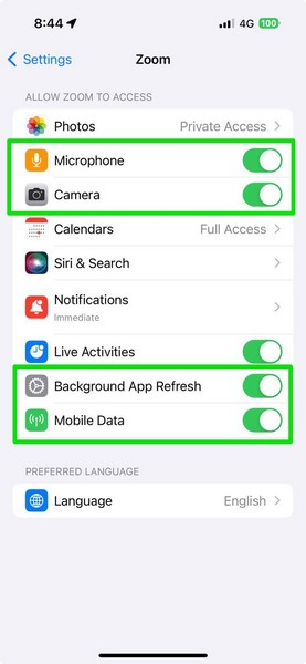 5. Varmista, että Zoom-sovellus on määritetty oikein iPhonessasi