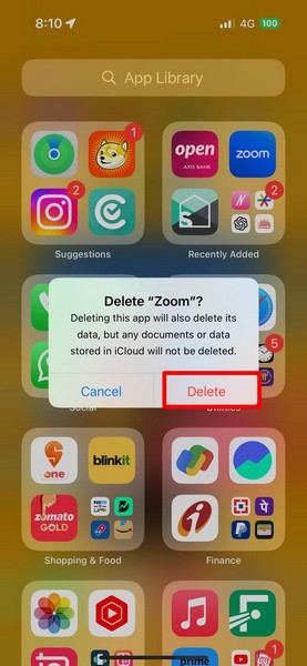 Nyt, jos mikään yllä mainituista menetelmistä ei auttanut korjaamaan Zoom-sovellus ei toimi iPhonessasi, voit viimeisenä keinona yrittää asentaa sovelluksen uudelleen iOS-laitteellesi. Tämä edellyttää, että poistat ensin Zoom-sovelluksen, mikä tarkoittaisi, että kaikki sovellustiedot ja muut sovellustiedostot poistetaan laitteeltasi.
