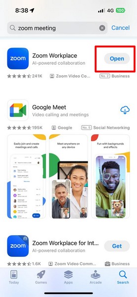 4.Kun Zoom-sovellus on poistettu iPhonesta,käynnistä App Store.