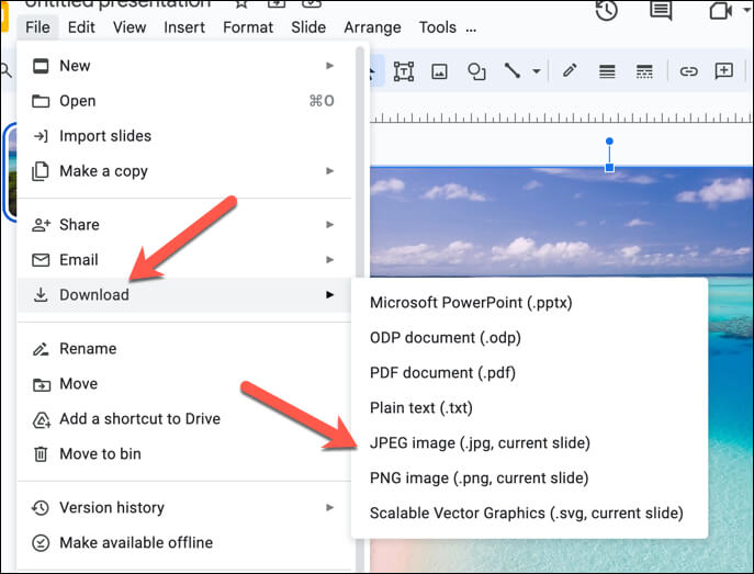- Kun olet tyytyväinen flip-painamiseenTiedosto>Lataaja valitse jokoJPEGtaiPNGvaihtoehtoja tallentaaksesi kuvan tietokoneellesi.