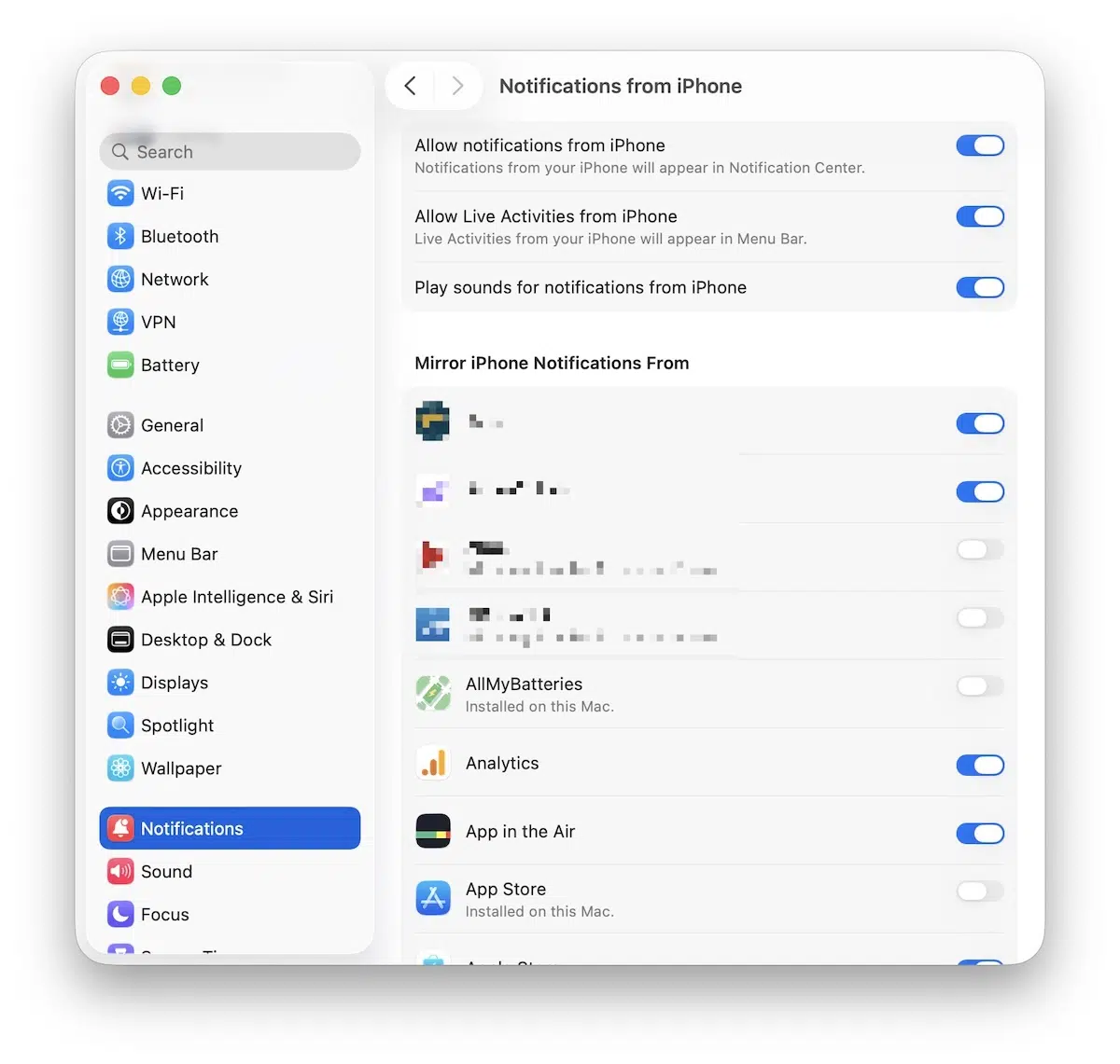 Kun olet asettanut sen, iPhone -ilmoitukset ilmestyvät Maciin tavallisten macOS -hälytysten rinnalla. Jokaisella on iPhone -tunnus, jotta voit kertoa ne toisistaan, ja ilmoituksen puhdistaminen yhdelle laitteelle puhdistaa sen automaattisesti toisella. Live -aktiviteetit integroituvat myös valikkopalkkiin, jolloin sinulle annettavat päivitykset esimerkiksi ajastimista, toimituksista tai urheilupisteistä. Voit hienosäätää, mitkä sovellukset näkyvät Macissa säätämällä ilmoitusasetuksia iPhonessa tai Macissa, joten vain hyödyllisimmät hälytykset pääsevät läpi.