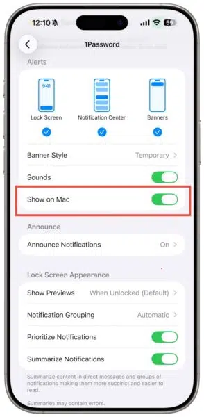 - Hallitse iPhonessa sovelluksen per-asetuksia asetuksissa> Ilmoitukset valitaksesi, mitkä myös Mac-mac näkyy.