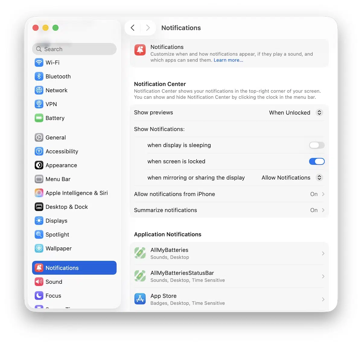 - Siirry osoitteeseen System -asetukset> Mac -ilmoitukset, jotta iPhone -hälytykset sallivat ja mukauta niiden esiintymisen.