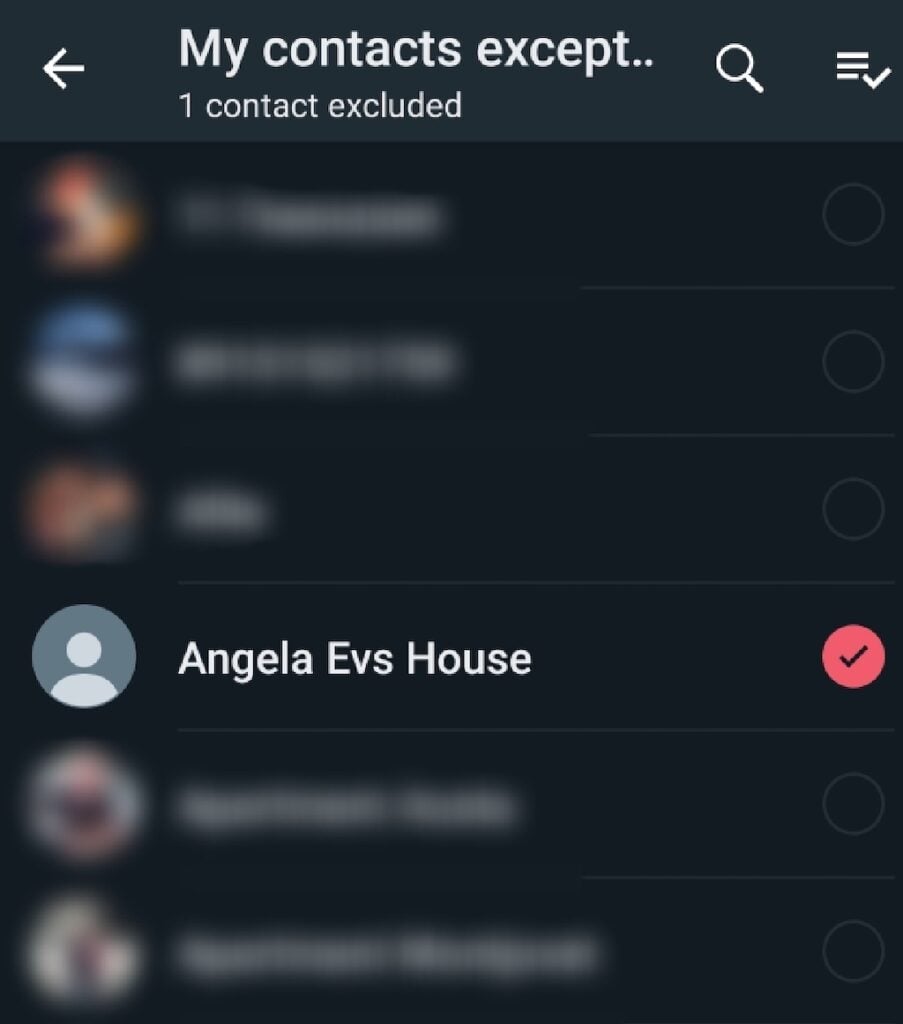 Voit hyödyntää tätä uutta päivitystä, vaikka et ole ollenkaan huolissaan siitä, että muut ihmiset seuraavat online -läsnäoloasi WhatsAppissa. Päinvastoin, saatat haluta, että ystäväsi tai rakkaasi tietävät, kun sinut viimeksi nähtiin verkossa. Tällöin voit asettaa viimeisen nähdyn tilanneYhteystietoni paitsiJa jätä vain ihmisille, joihin luotat valitsematta.