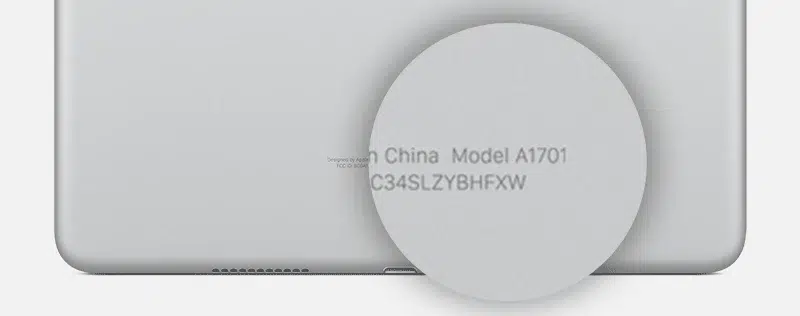Huomaat mallinumeron iPadin takaosassa. Se on alfa-numeerinen koodi, alkaen'A', jota seuraa joukko numeroita.Tämä numero ei vain kerro sinulle iPad -mallia; Se kertoo myös, onko mallisi Wi-Fi tai Wi-Fi + Cellular.
