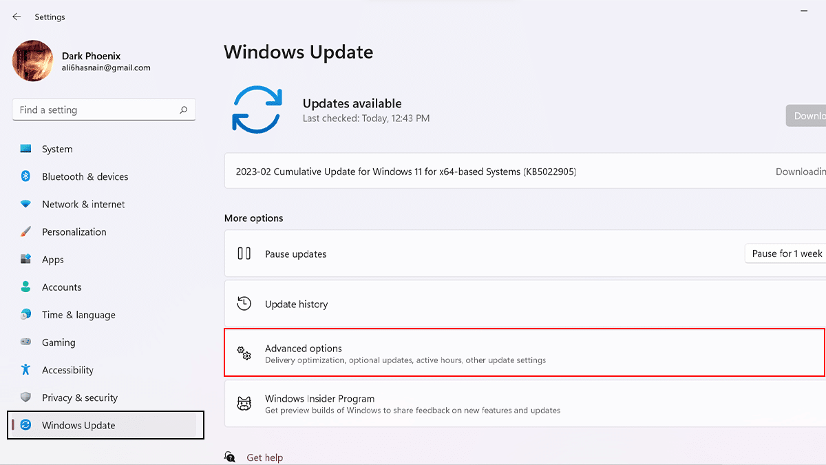 - AvataAsetukset> NapsautaWindows Update> NapsautaEdistyneitä vaihtoehtoja.