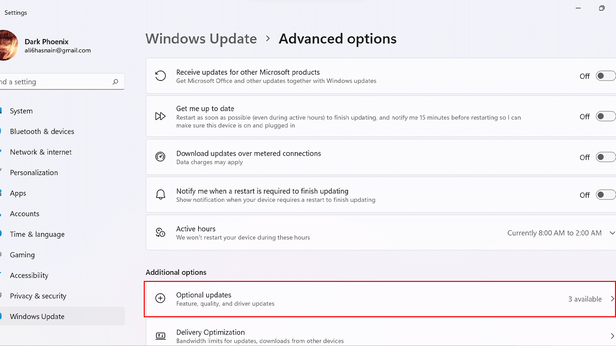 - Napsauttaa"Valinnaiset päivitykset"vaihtoehto.