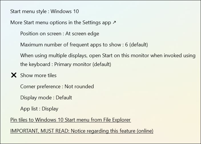 3.Nyt näet useita vaihtoehtoja mukauttaaksesi Windows 11 Start -valikon.