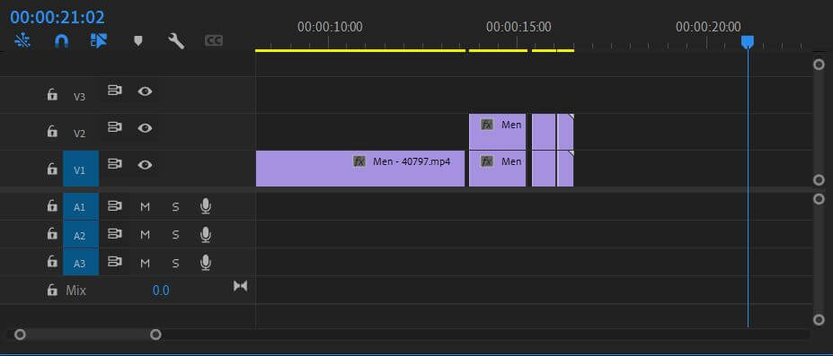 - Jotta materiaalit leikataan sisään ja ulos, jaa leike siihen pisteeseen, että haluat häiriötä alkavan, ja levitä ne sitten hiukan, kuten alla olevassa kuvakaappauksessa.