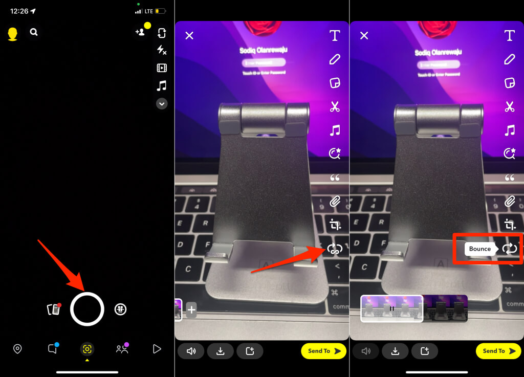 Seuraa alla olevia vaiheita, jotta voit luoda Bounce -videoita Snapchatissa.