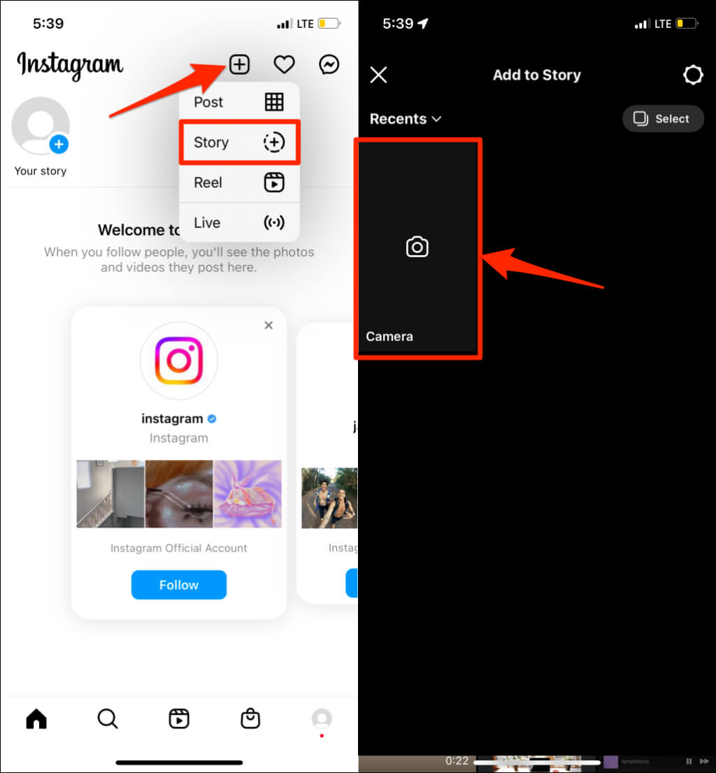 - Avaa Instagram, napautaPlus -kuvakeOikeassa yläkulmassa ja valitseTarina.