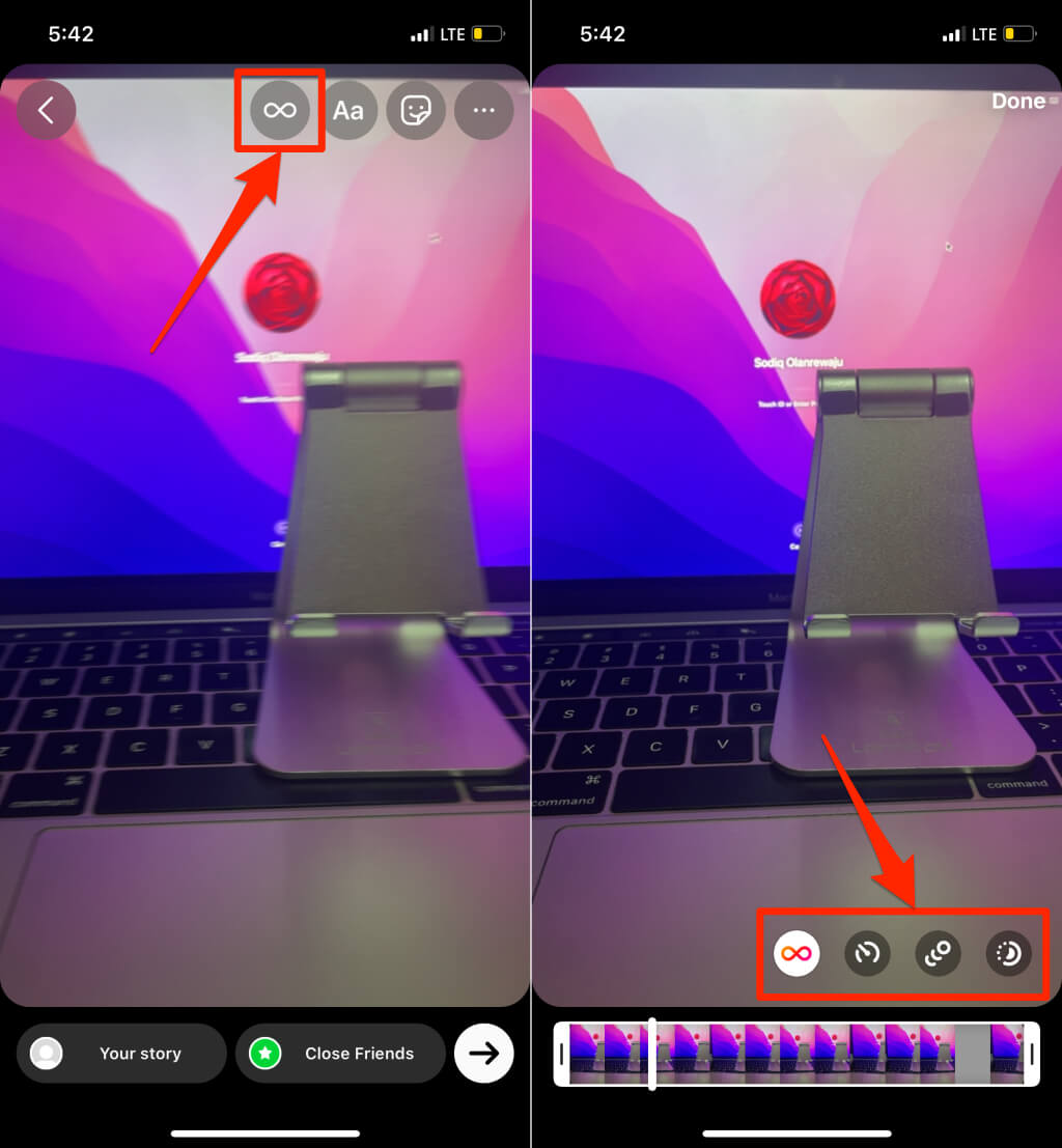 Esikatsele leike ja siirry vaiheeseen 5 muokataksesi tai jakaaksesi bumerangin Instagram -tarinoihisi.