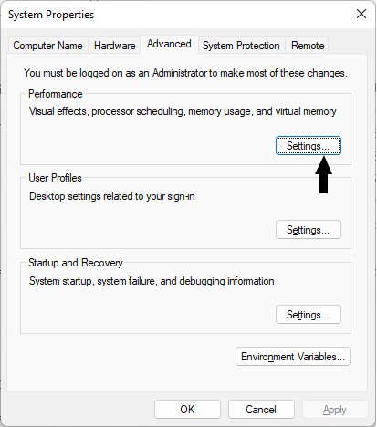 3. ValitseEdistyneiden järjestelmien asetuksetjärjestelmän ominaisuuksien avaaminen.