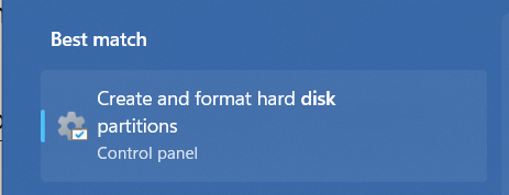 1.PainaWindows-avainavaamaanWindowsin hakukenttäja tyyppiLevyn hallinta työkalusiinä.
