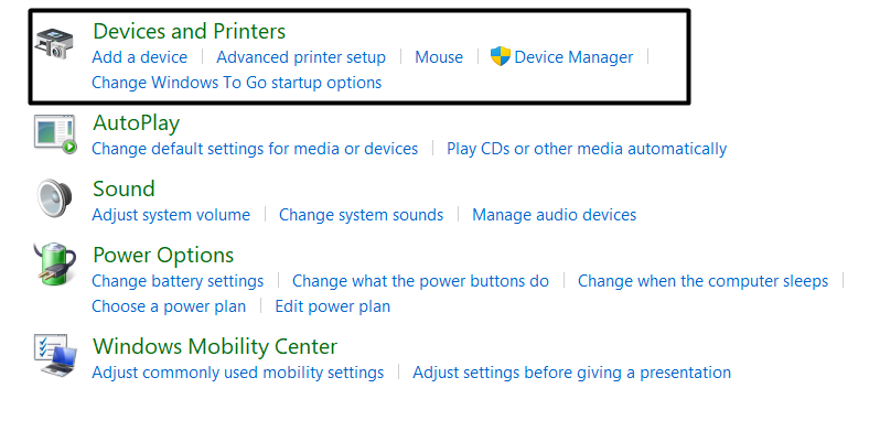 2.ValitseLaitteet ja tulostimet-vaihtoehto samassa näytössä ja laajennaHiiriosio.