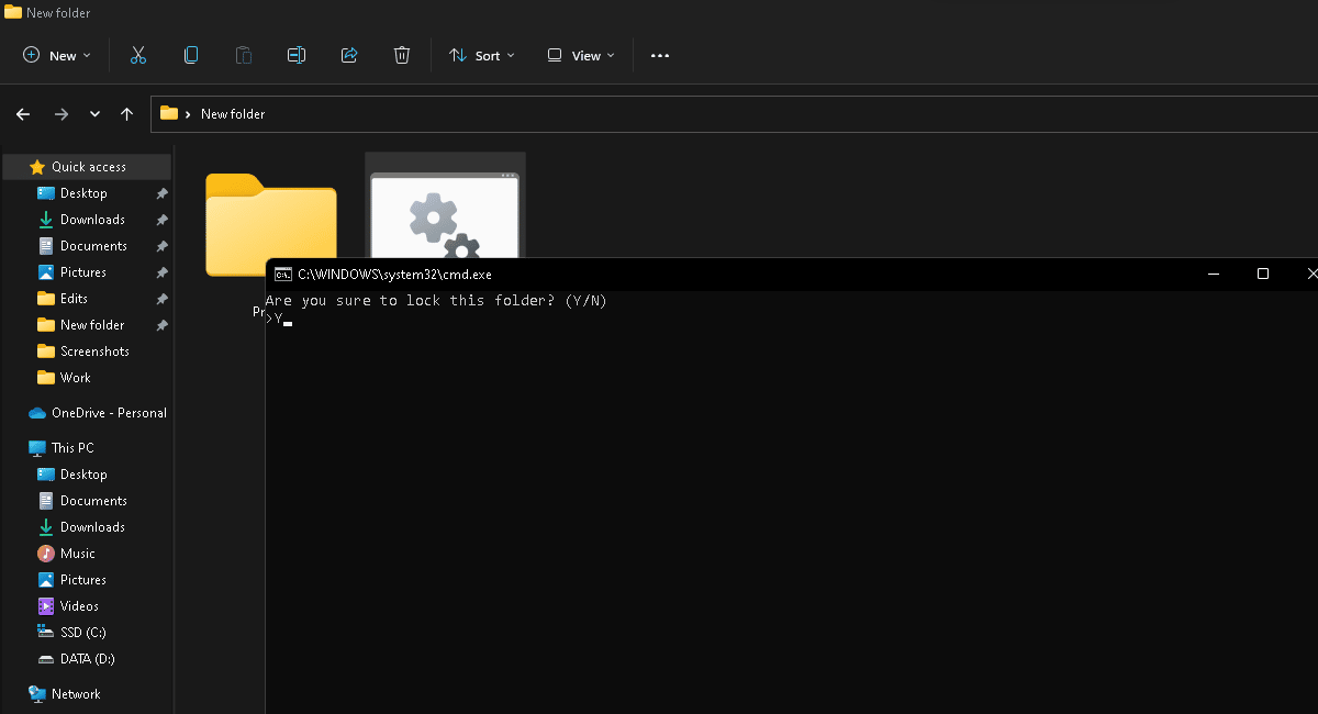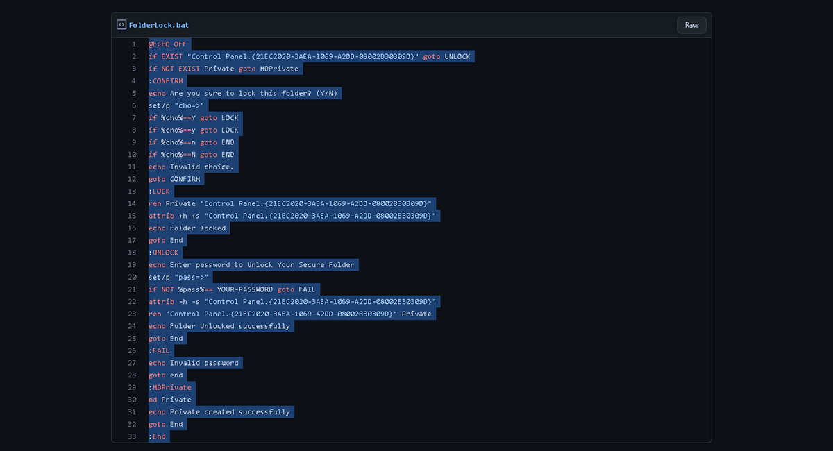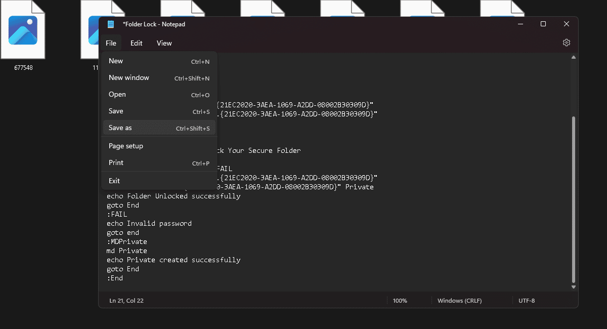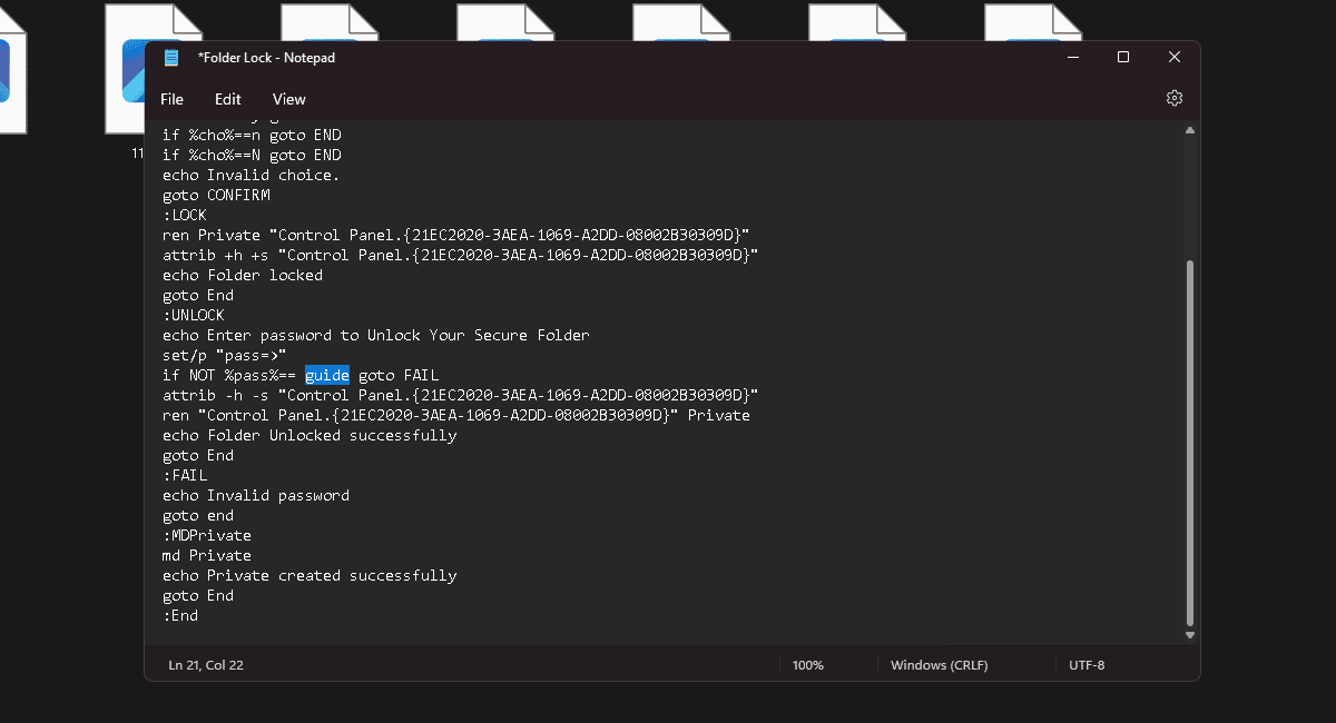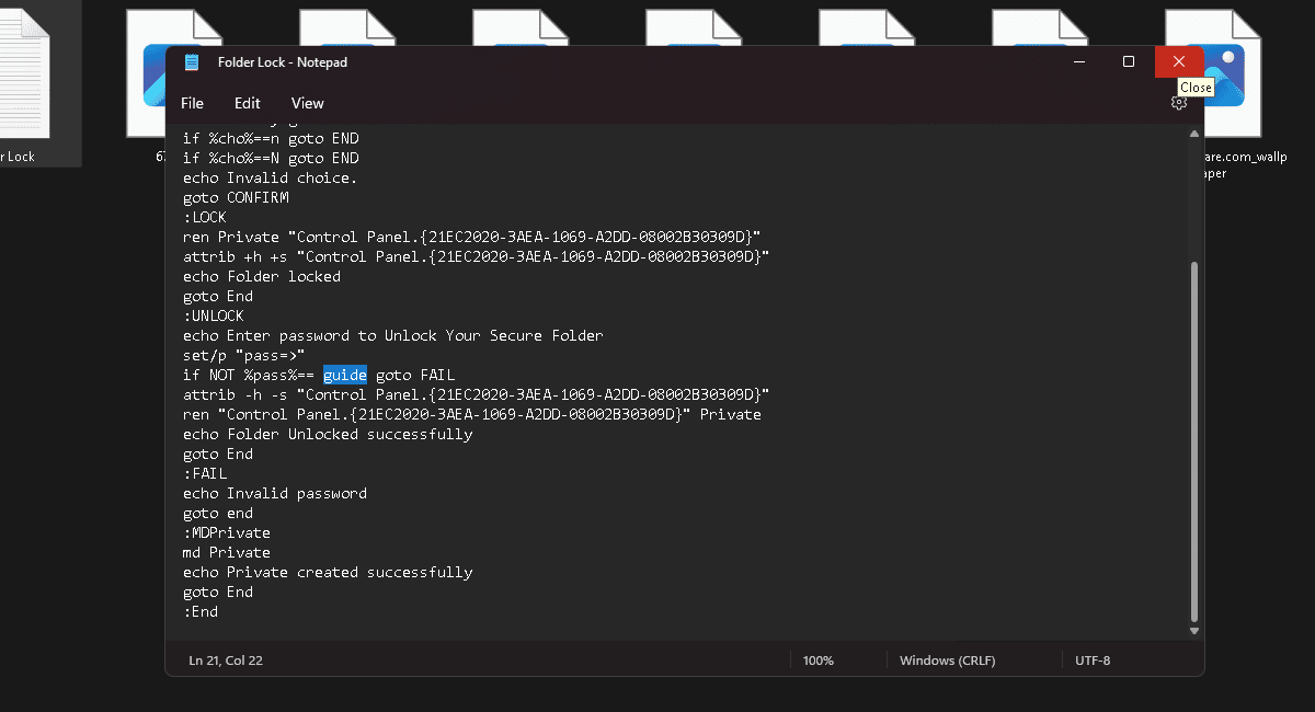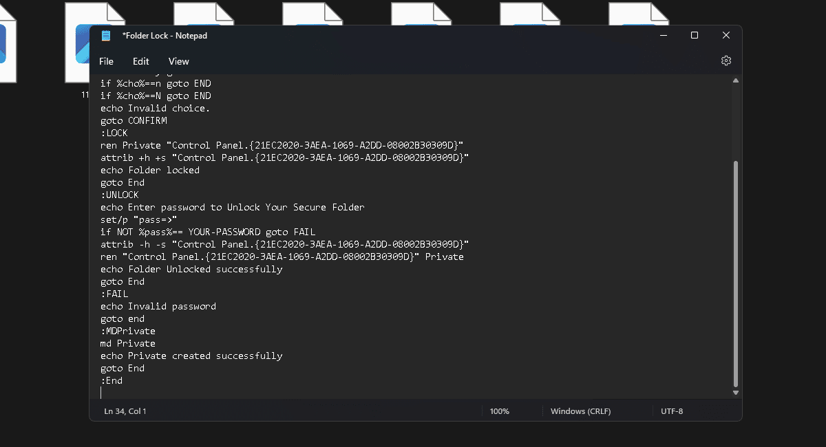 - Muista lukita kansio kaksoisnapsauttamalla komentotiedostoa ennen sen sulkemista.