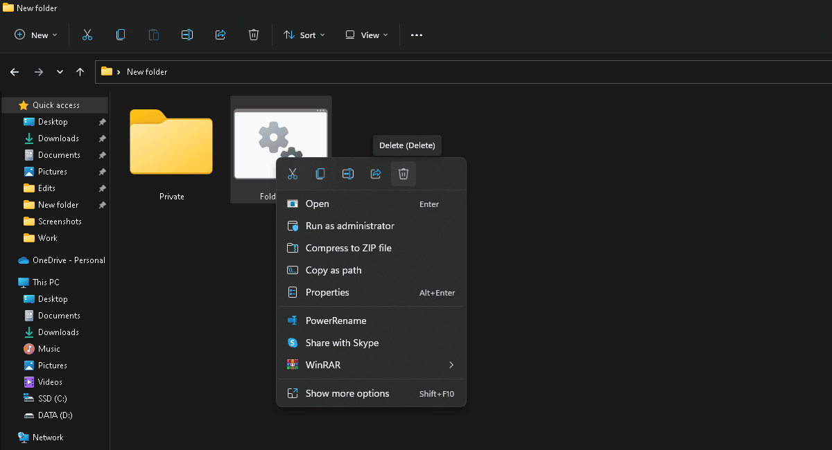 - Napsauta hiiren kakkospainikkeella "Private" -kansiota > poista.