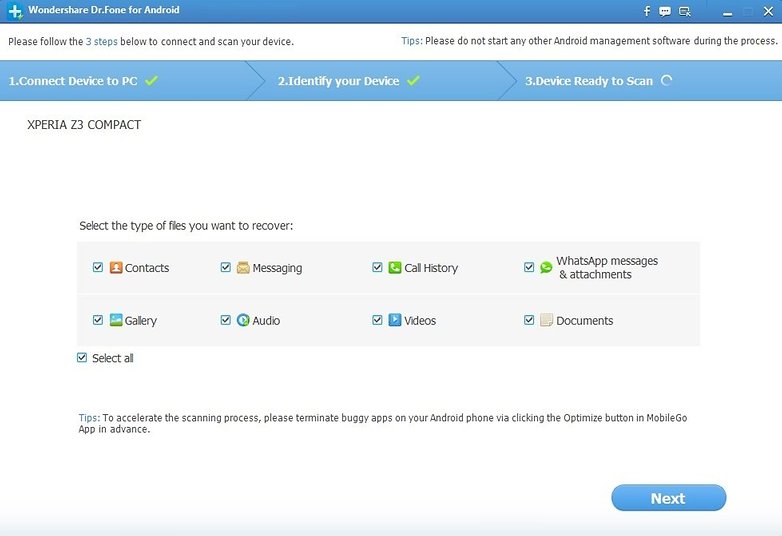 Valitse vain tallentaaksesi tiedostot ja noutaa paina. / © Techindroid / Wondershare