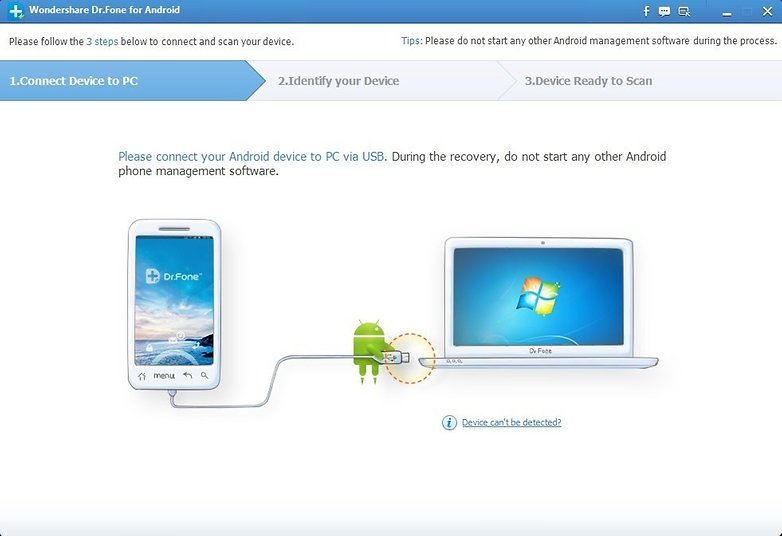 Kytke älypuhelin tietokoneeseen USB: llä. / © Techindroid / Wondershare