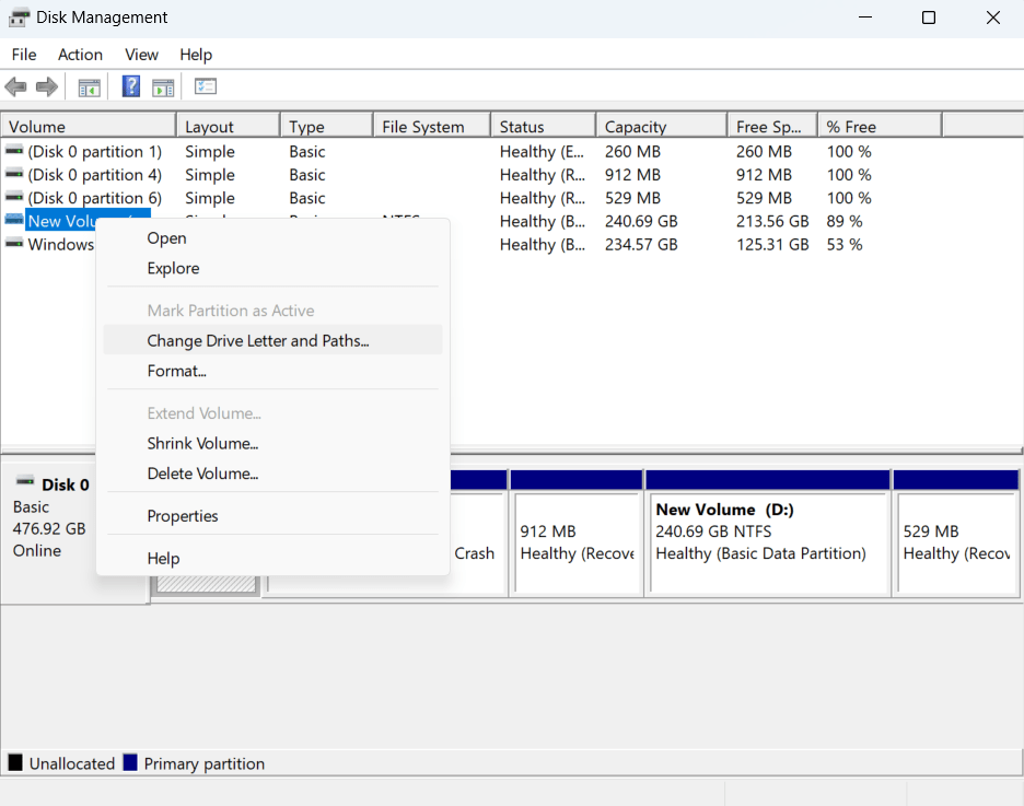 Vaihe 3 -Etsi asema, johon haluat määrittää kirjeen. Napsauta sitä hiiren kakkospainikkeella ja valitseVaihda aseman kirje ja polut.