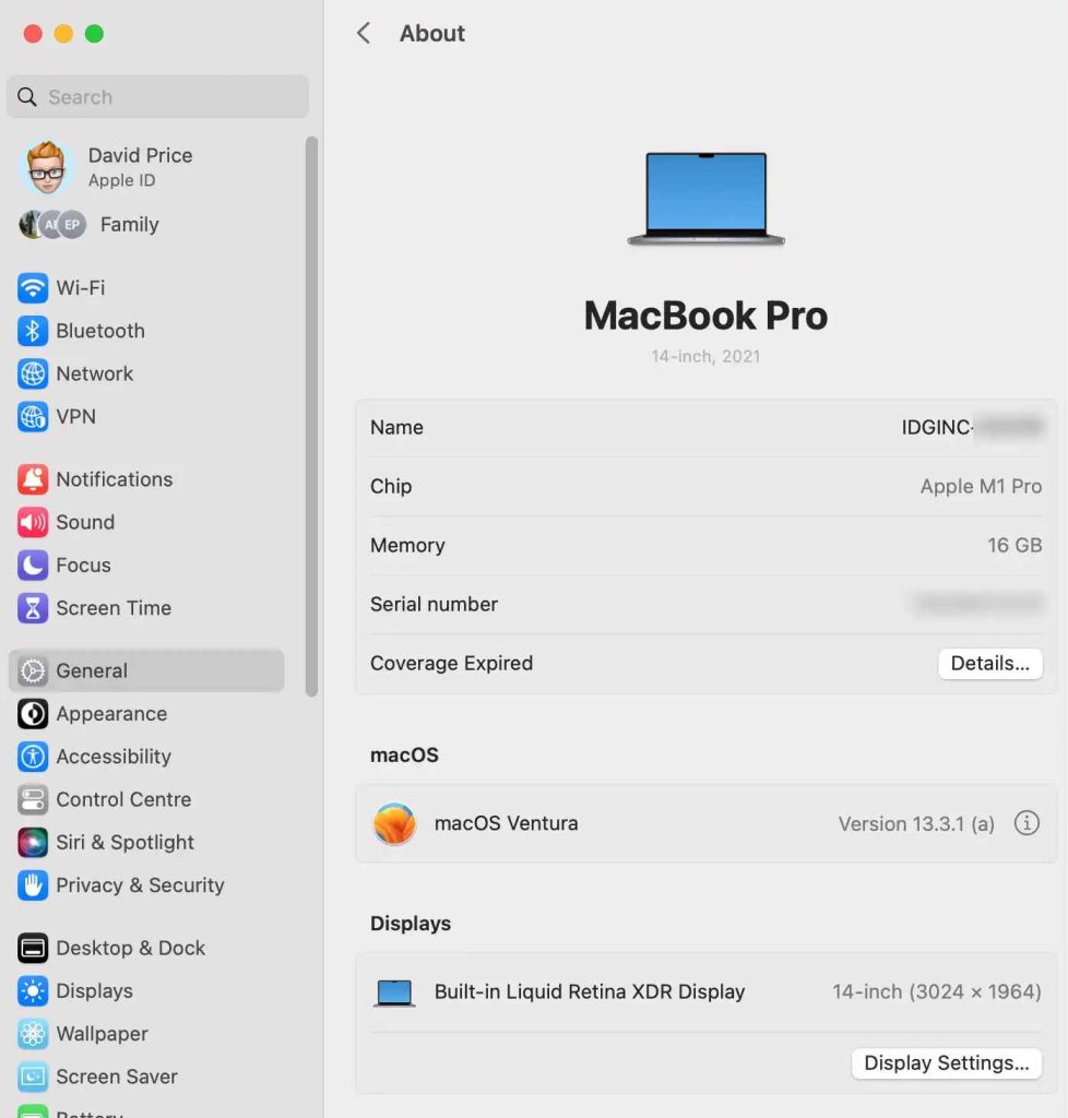 Aloita MacOS Rapid Security Response -tietojen käyttämiseksiNapsauttamalla Apple -valikkoaSijaitsee vasemmassa yläkulmassa. Sieltä,Valitse ”Tästä Macista".Voit tarkastella lisätietoja napsauttamalla"Lisätietoja", mikä johtaa sinut "Tietoja" -sivullejärjestelmäasetuksissa. (Vaihtoehtoisesti voit käyttää tätä sivua myös avaamalla System Settings -sovelluksen suoraan ja navigoimalla yleisesti> Tietoja.)