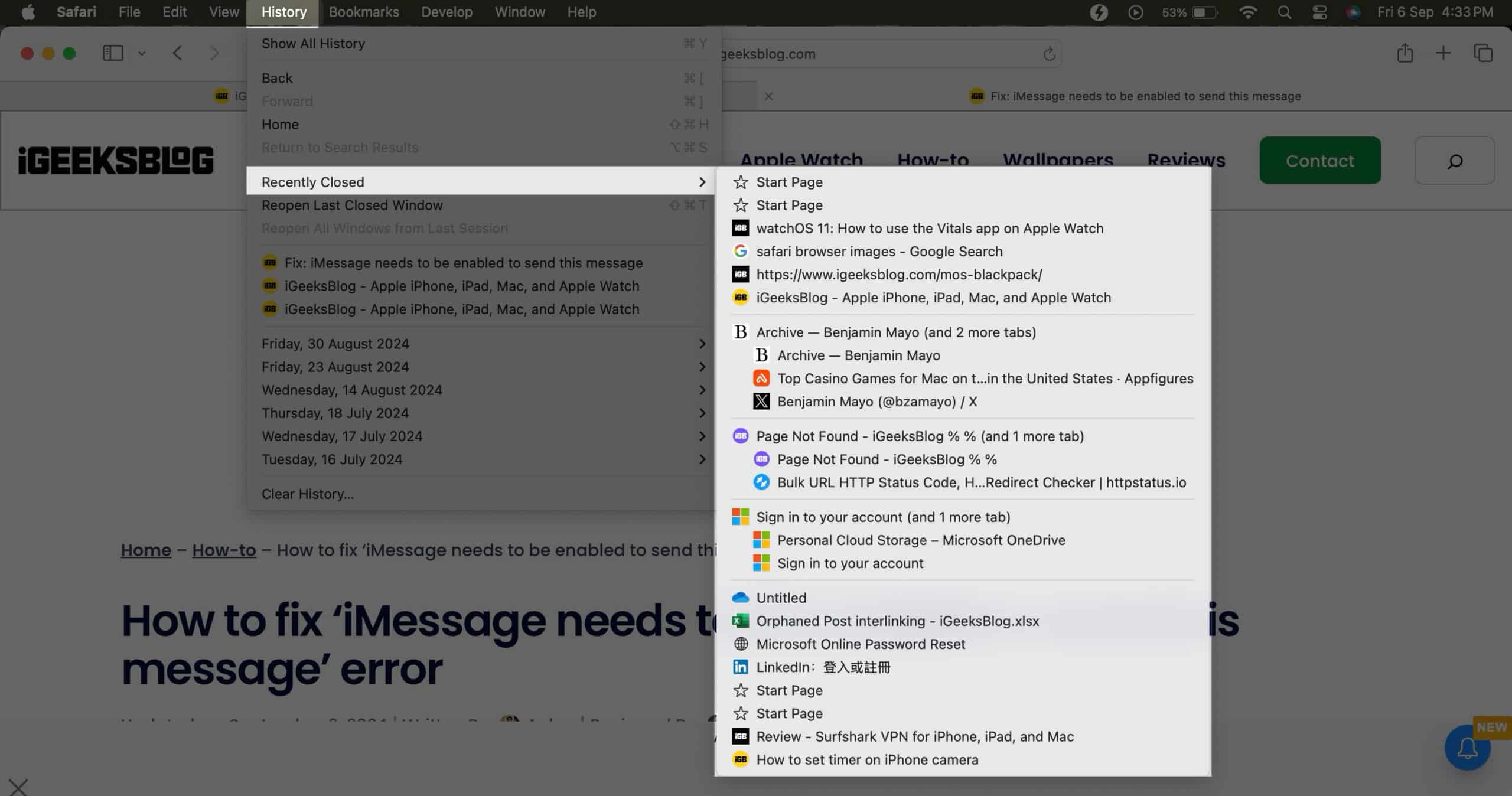 Olet kuitenkin vahingossa sulkenut Safari -ikkunan; Et löydä tätä äskettäin suljettuja välilehdet. Siksi siirry seuraavaan ratkaisuun.