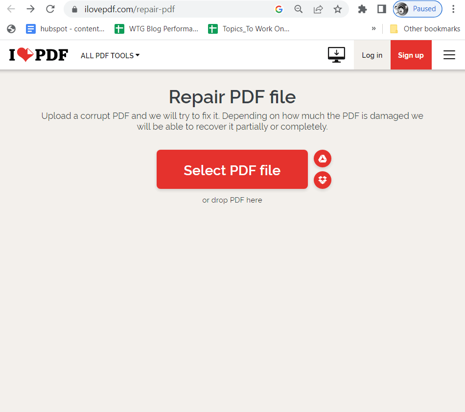 Voit myös korjata vaurioituneet PDF -tiedostot verkossa ollessasi liikkeellä. Esimerkiksi ILOVEPDF on yksi parhaista alustoista PDF -tiedostojen korjaamiseksi. Näin voit tehdä sen -