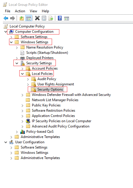 Computer Configuration > Windows Settings > Security Settings > Local Policies > Security Options.